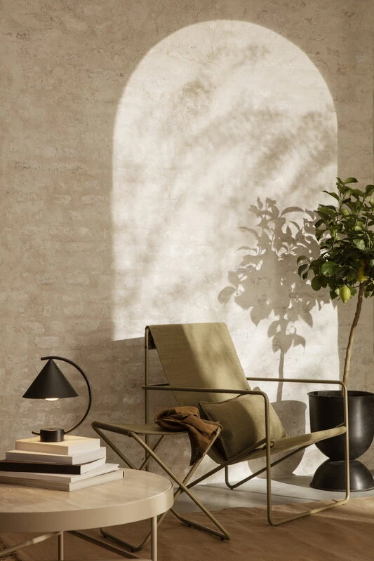 ferm LIVINGin Desert-tyyny elävöittää sisustusta ja hyödyntää näppärästi kulutuksesta jäänyttä muovia. Kierrätetystä PET-langasta käsintehty tyyny on täysin mukautettu ulkokäyttöön, mutta tuntuu villamaisen pehmeältä käytössä. Kapea tyyny sopii yhteen Desert Lounge Chairin kanssa tai koristaa mainiosti esimerkiksi olohuoneen tai parvekkeen sohvaa.