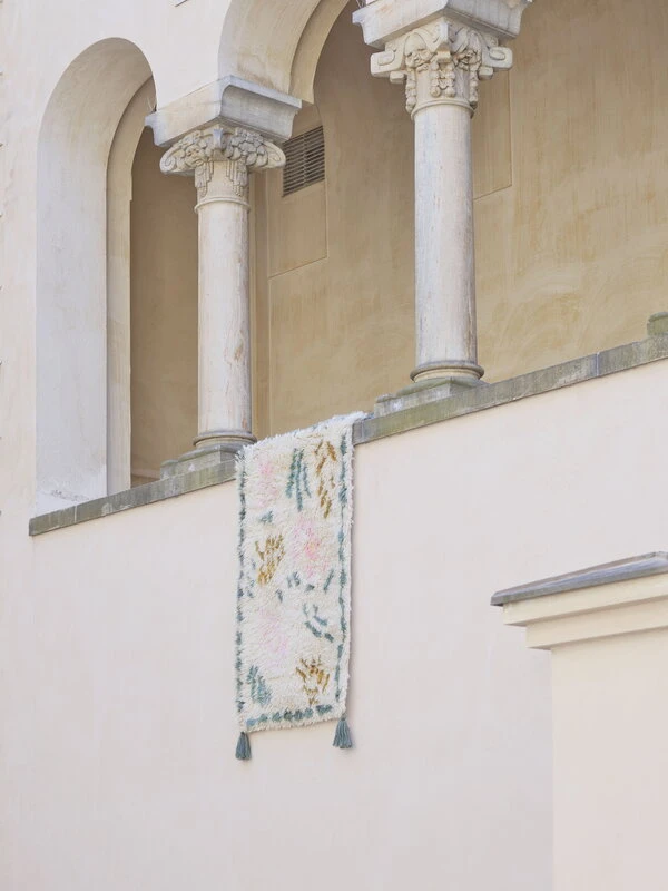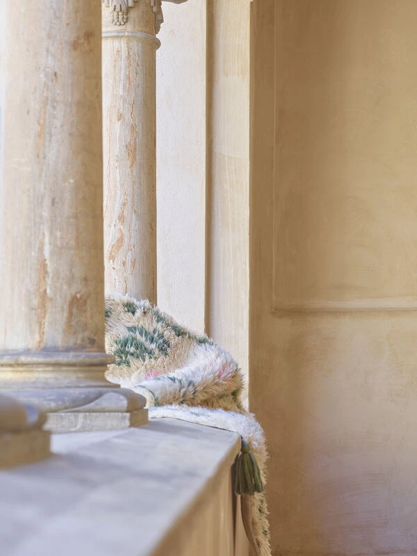 Finarten Väre-matto tuo kotiin ripauksen kansallisromanttista tunnelmaa: sen orgaaniset siveltimenvedot tuovat mieleen suomalaisen aarnimetsän, joka väreilee ikiaikaista elämää. Intiassa käsin solmittu villamatto on viimeistelty hurmaavilla koristetupsuilla.