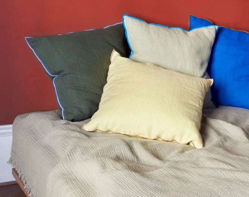 HAYn Outline-tyyny tuo täydellisesti yhteen klassisen tyylin ja modernien yksityiskohtien parhaat puolet. Puuvillaa ja pellavaa materiaaleinaan yhdistelevällä kankaalla verhoillun Outline-tyynyn reunat on viimeistelty kontrastia tuovalla tereellä. Päivitä makuu- tai olohuoneesi tunnelma HAYn raikkaalla Outline-tyynyllä, joka pitää tyylikkyyden lisäksi myös mukavuuden kaiken keskiössä.