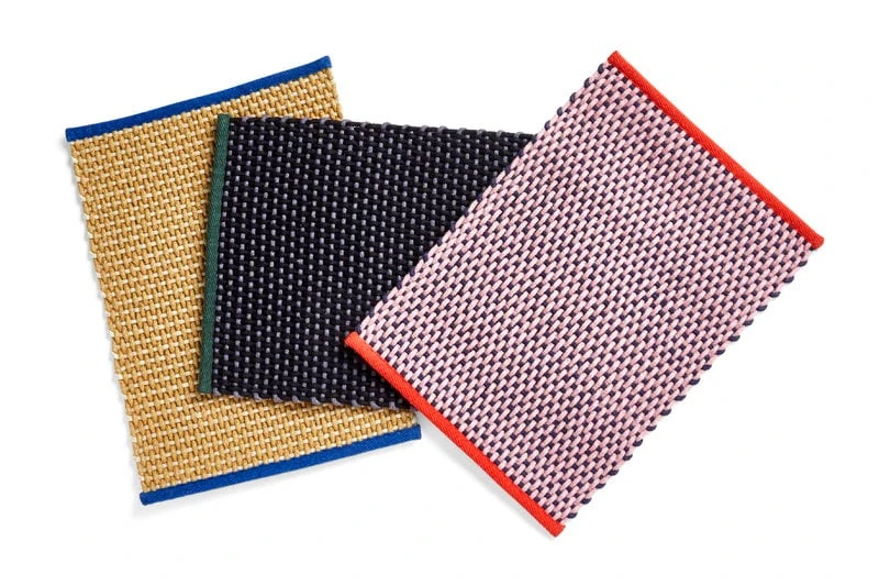 HAYn suorakaiteen muotoinen ovimatto ihastuttaa leikkisällä olemuksellaan. Kaksisävyisestä juutista ja villasta kudottu kynnysmatto toivottaa lämpimän tervetulleeksi eteisessä, mutta soveltuu lisäksi piristäväksi yksityiskohdaksi esimerkiksi parvekkeelle tai pieneen kylpyhuoneeseen. Kontrastia veikeään ovimattoon tuo päädyissä olevat suloisen värikkäät kanttaukset, jotka viimeistelevät ilmeen.