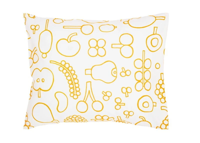 Iittalan Oiva Toikka -kokoelman pussilakanasettiä koristaa hyväntuulinen Frutta-kuvio. Setin pussilakana ja tyynyliina on valmistettu perkaalipuuvillasta, joka tuntuu ihoa vasten miellyttävän sileältä ja viileältä – ylellinen materiaali on monille tuttu hotellilakanoista.