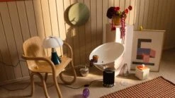 Johanna Gullichsenin Helios Discushion -istuintyyny elävöittää sisustusta suomalaisen kudontaperinteen modernilla tulkinnalla. Pyöreä istuintyyny sopii täydellisesti yhteen esimerkiksi Artekin Aalto-jakkaroiden kanssa.