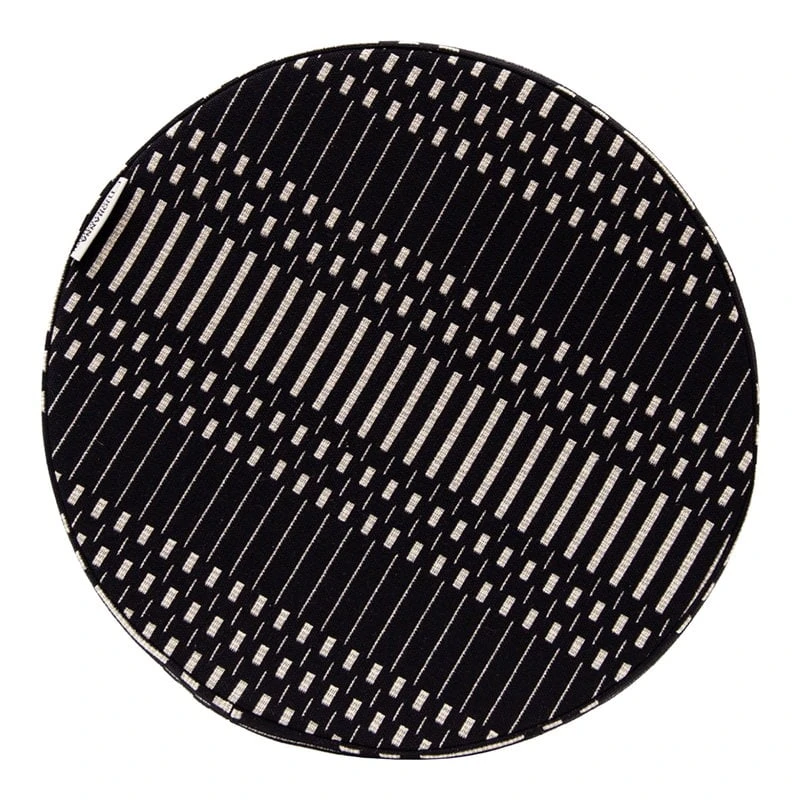 Johanna Gullichsenin Helios Discushion -istuintyyny elävöittää sisustusta suomalaisen kudontaperinteen modernilla tulkinnalla. Pyöreä istuintyyny sopii täydellisesti yhteen esimerkiksi Artekin Aalto-jakkaroiden kanssa.