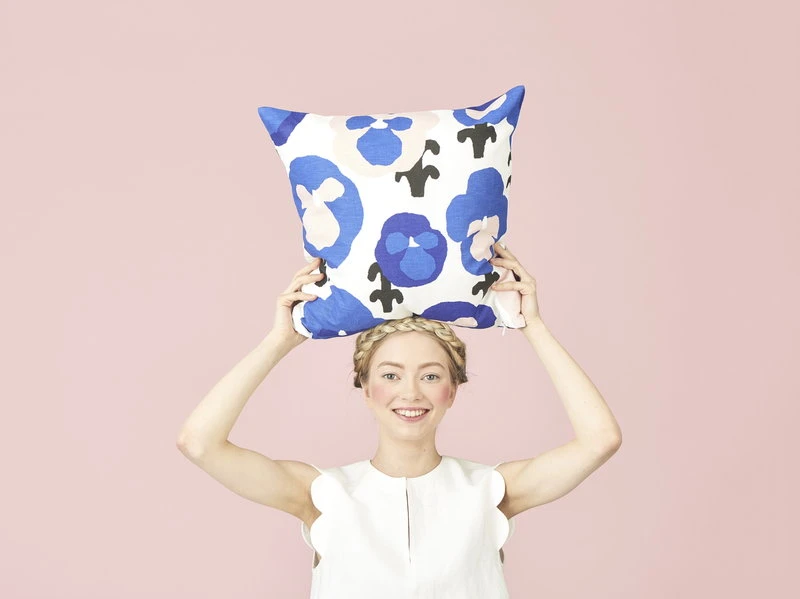 Kaunisteen Orvokki-tyynynpäällistä somistaa viehättävä, Hannele Äijälän suunnittelema kukkakuosi, jossa hehkuvat suuret keltaiset, vaaleansiniset ja vaaleanpunaiset orvokit. Silkkipainettu tyynynpäällinen on valmistettu pellavan ja puuvillan sekoitteesta, ja se sopii tyynyihin, joiden koko on 50 cm x 50 cm. Päällisen alareunasta löytyy piilovetoketju.