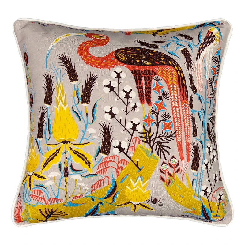 Klaus Haapaniemen Crane-tyynynpäällistä koristaa rönsyilevän kukkameren seassa seisova uljas kurki. Neliönmuotoinen tyynynpäällinen on valmistettu kestävästä pellavan ja puuvillan sekoituksesta ja viimeistelty piilovetoketjulla. Tyynynpäällinen on kuvioitu molemmilta puolilta.