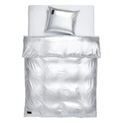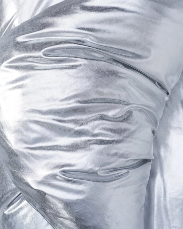 Magnibergin Nude Metallic Jersey -tyynyliina tuo makuuhuoneeseen annoksen diskopallojen välkettä ja pop-taiteen tunnelmaa. Nude Metallic Jersey -lakanoiden materiaalina on käytetty polyesteria ja elastaania, joiden avulla on saavutettu ohut, joustava ja äärimmäisen metallinhohtoinen lopputulos. Kiiltävät ja intensiivisen hopeanhohtoiset lakanat ovat takuuvarma katseenkääntäjä ja ilontuoja.