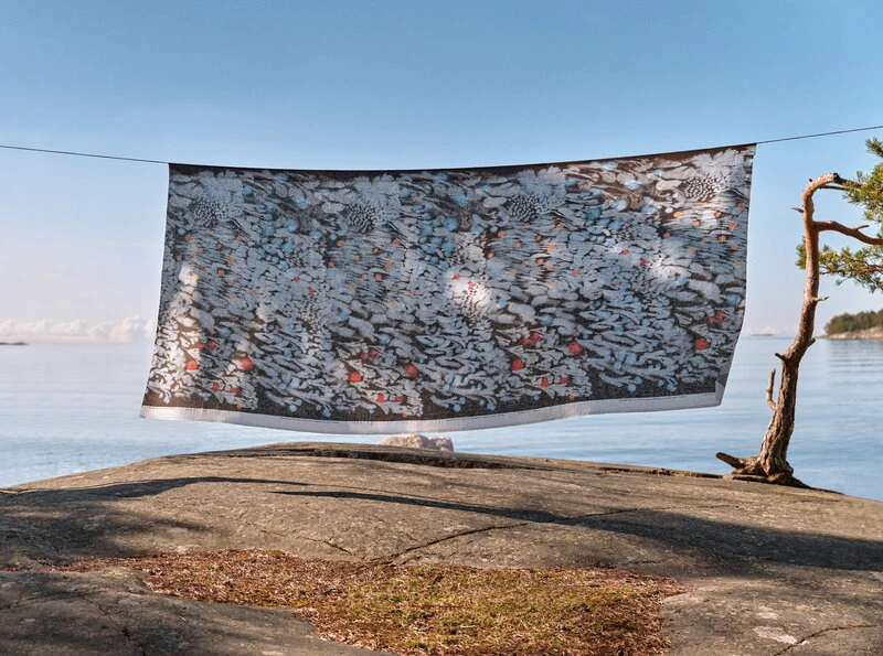 100 % pellavasta valmistettu kangas on painettu Helsingissä, ja se myydään metreittäin.