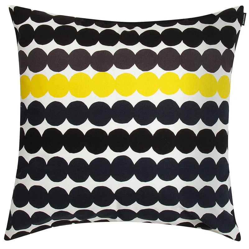 Marimekon Räsymatto-tyynynpäällistä somistaa Maija Louekarin graafinen kuosi, jonka inspiraationa on käytetty vanhojen suomalaisten räsymattojen tekstuuria ja tunnelmaa. Tukevasta puuvillakankaasta valmistettu tyynynpäällinen on kooltaan 50 x 50 cm, ja se on varustettu vetoketjulla.