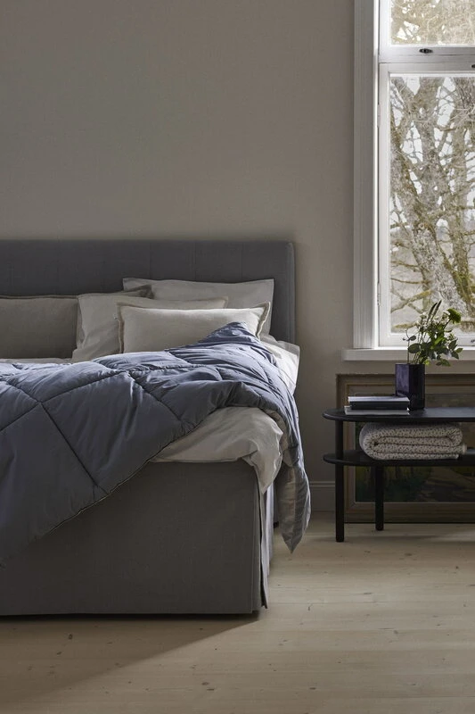 Matrin Moona-päiväpeitto tuo makuuhuoneeseen ylellisen rentoa tunnelmaa isolla ruututikkauksellaan. Muhkea päiväpeite on kaksipuolinen, joten jos sängyn ilme alkaa kyllästyttää, on sitä helppo päivittää vain peittoa kääntämällä. Pehmeä Moona-peitto on valmistettu kestävästä perkaalipuuvillasta ja täytetty kuohkealla polyesterivanulla, joka lämmittää mukavasti, jos tahdot kaivautua peiton alle nopeille nokosille.