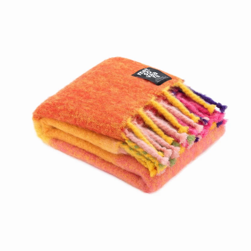 Värikäs Karpalo Pastel -huopa on valmistettu Etelä-Afrikassa mohairlangan ja villan yhdistelmästä. Sen pinta on harjattu pörröiseksi, mikä antaa sille paitsi klassisen ja ylellisen ilmeen, myös ihanan pehmoisen tekstuurin. Lämpöiseen vilttiin kelpaa kääriytyä niin päivänokosilla kuin viileinä iltoina sohvannurkassa.