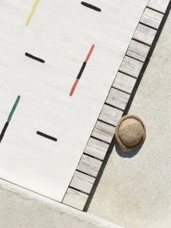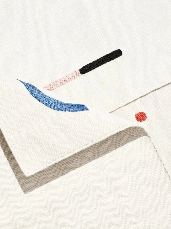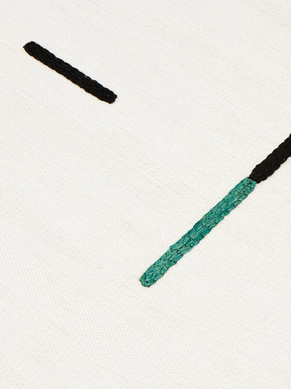Näkymä-matto valmistetaan käsityönä Intiassa, ja myös sen kuviot kirjaillaan mattoon käsin. Maton materiaalina on kierrätetty PET-muovi, eli käytännössä se on valmistettu kierrätetyistä muovipulloista – sitä ei tosin hevillä uskoisi, sillä ulkonäöltään ja tekstuuriltaan matto muistuttaa enemminkin ryhdikästä villamattoa kuin muovimattoa. Materiaalin ansiosta matto on kuitenkin erittäin kestävä, helppohoitoinen ja soveltuu myös ulkokäyttöön. Niinpä matto sopii yhtä lailla sisätilojen somistajaksi kuin terassille tai parvekkeellekin.