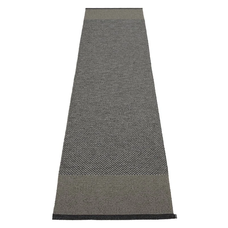 Pappelinan Edit-matto on kuvioitu kauniilla kolmisävyisellä kuosilla, jossa värit sekoittuvat keskenään eläväpintaiseksi, metallinhohteen sävyttämäksi kudelmaksi. Maton käännetyt päätyreunat on viimeistelty vahvoin ompelein tehdyillä päärmeillä, ja yhteen kulmaan on ommeltu kuminen Pappelina-logo. Edit-matto voidaan pestä käsin tai pesukoneessa.