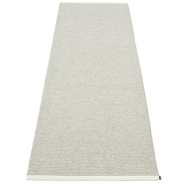 Pappelinan Mono-muovimatot kudotaan perinteisillä kangaspuilla Ruotsin Dalarnassa. Ftalaatittomasta PVC-narusta valmistetut matot ovat kestäviä ja helppohoitoisia, ja niiden meleeratut värisävyt sopivat monenlaisiin sisustuksiin. Kapean muotonsa ansiosta tuote on mitä mainioin käytävämatto tai terassimatto ulkokäyttöön, ja sopii näppärästi myös vaikkapa lastenhuoneeseen tai keittiöön. Mono-matot on viimeistelty kantatuilla päillä ja kumisella Pappelinan logolla.