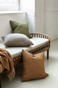 Røros Tweedin Isak-tyyny on norjalaisen suunnitteluduo Anderssen & Vollin käsialaa. He ottivat tyynyn kauniin vivahteikkaaseen pintaan vaikutteita perinteisten Shaker-tuolien värikkäistä puuvillapunoksista, ja sisustustyynyn moderni ilme ja kaksivärinen sävytys piristävätkin niin sohvan kuin nojatuolin ilmettä.