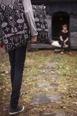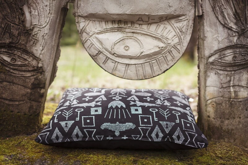 Saana ja Ollin Maailman synty -tyynynpäällinen on kuvioitu suomalaisesta ryijy- ja täkänäperinteestä vaikutteita ottaneella printillä. Ikiaikaisista luomismyyteistä poimitut symbolit ja hahmot asettuvat Maailman synty -kuosissa rytmikkääksi kokonaisuudeksi.