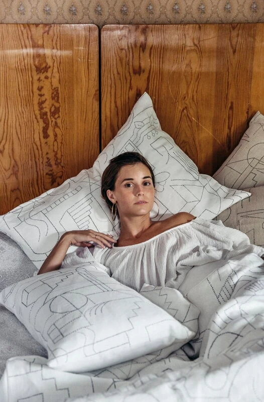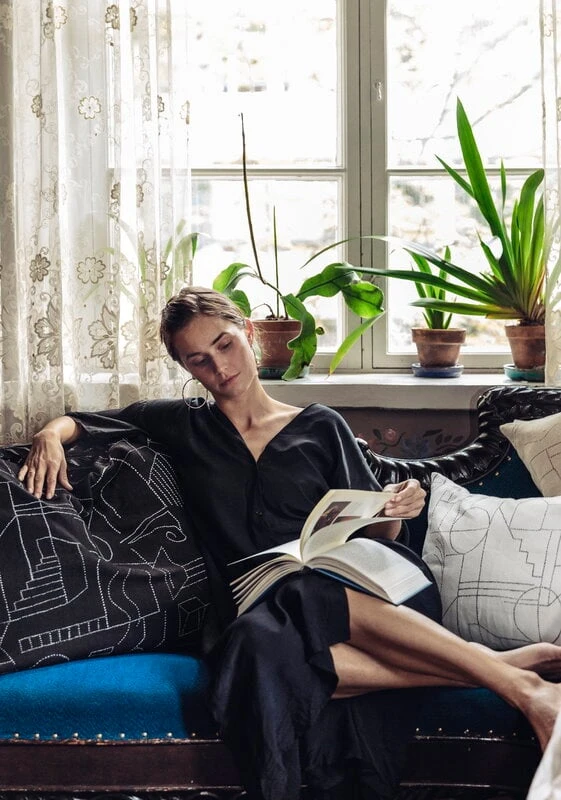 Saana ja Ollin Unien talo -tyynynpäällisen abstrakti kuosi on inspiroitunut rakennusperinteestä ja arkkitehtonisista unista. Kaksisävyistä Unien talo -kuosia rytmittävät hienovaraisesti luonnosteltujen linjojen luomat graafiset kuviot. Kaikki Saana ja Olli -tuotteet on valmistettu kestävästä sataprosenttisesta hamppukankaasta, joka on tuotettu Euroopassa. Tuotteet on valmistettu Suomessa kestävän kehityksen periaatteita kunnioittaen.