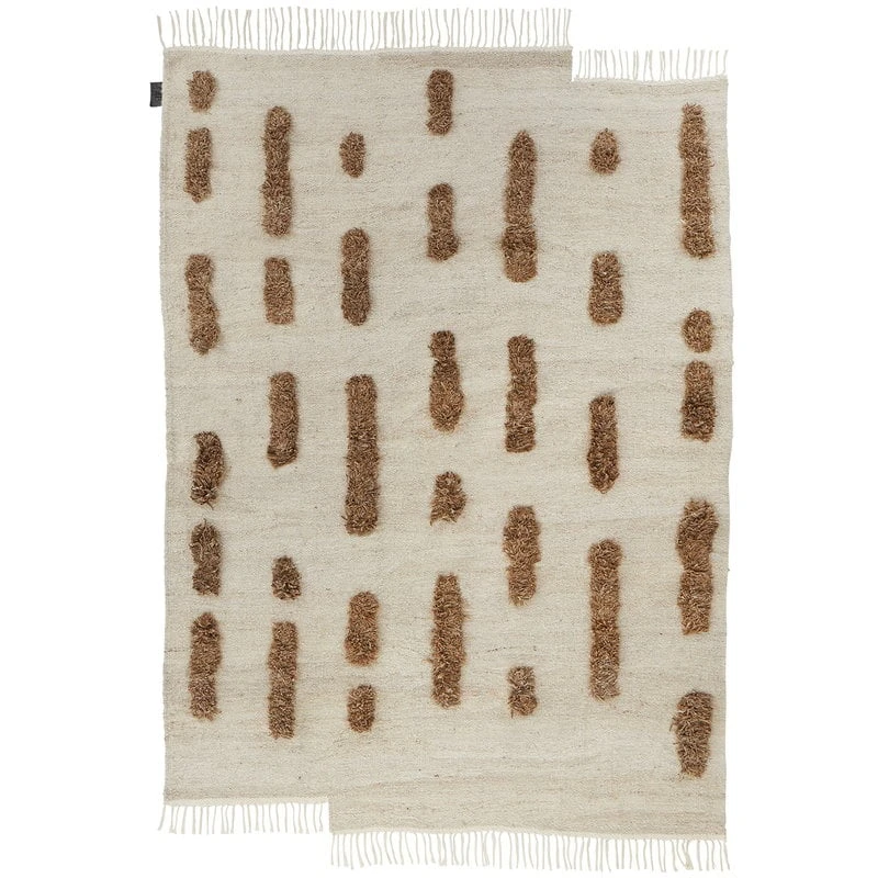 Laine-matossa solmittu kuviointi elävöittää kudotun maton pintaa, ja epäsymmetrinen reuna tuo särmää muutoin hillittyyn designiin. Laine-matto on saatavilla useassa luonnollisessa väriyhdistelmässä ja siitä on olemassa myös kokonaan solmittu versio.